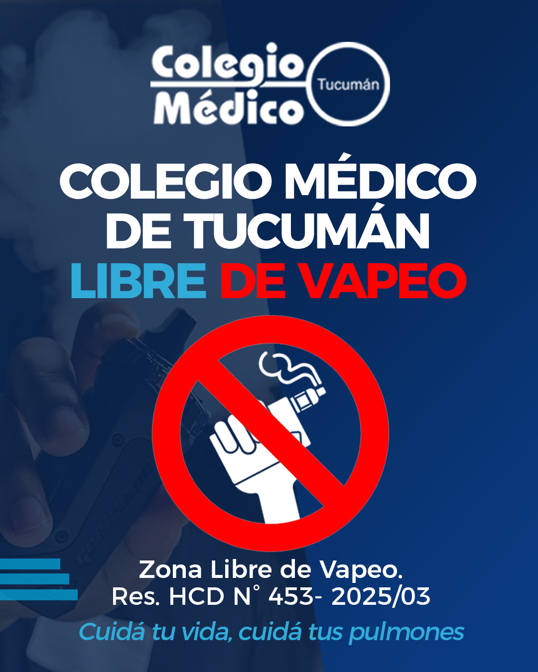 A partir de la fecha de hoy, 4 de abril de 2025, Colegio Médico de Tucumán se declara como espacio libre de vapeo.
